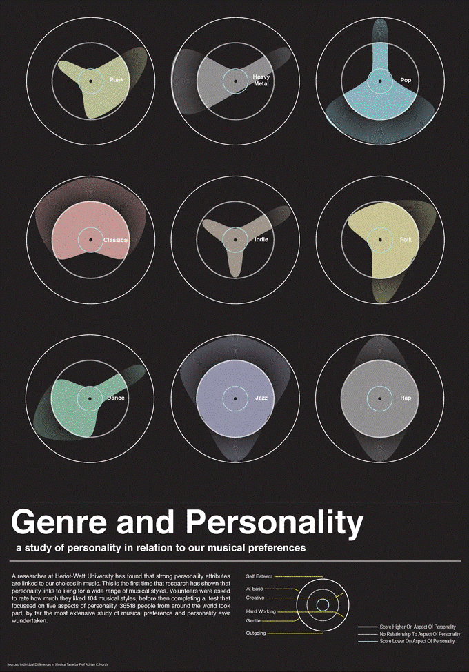 Đây cũng là một khám phá mới về các thể loại âm nhạc khác nhau tương ứng với tính cách của chúng ta như thế nào, theo một nghiên cứu tiến hành tại Đại học Heriot-Watt: