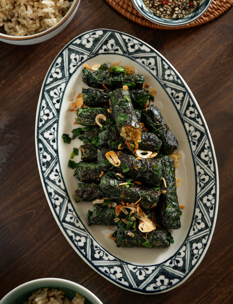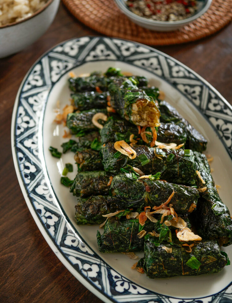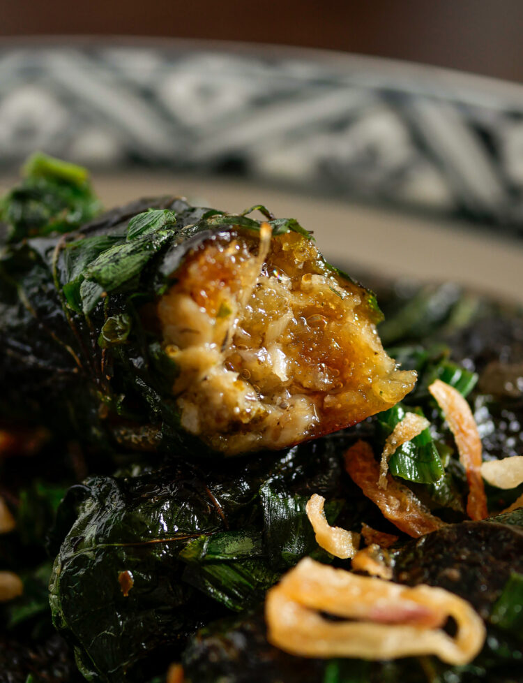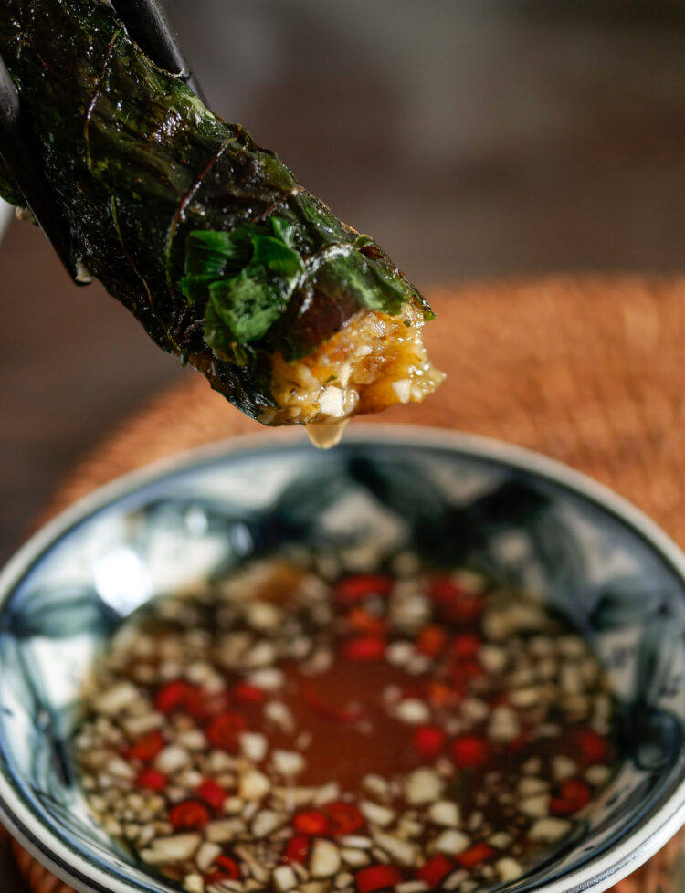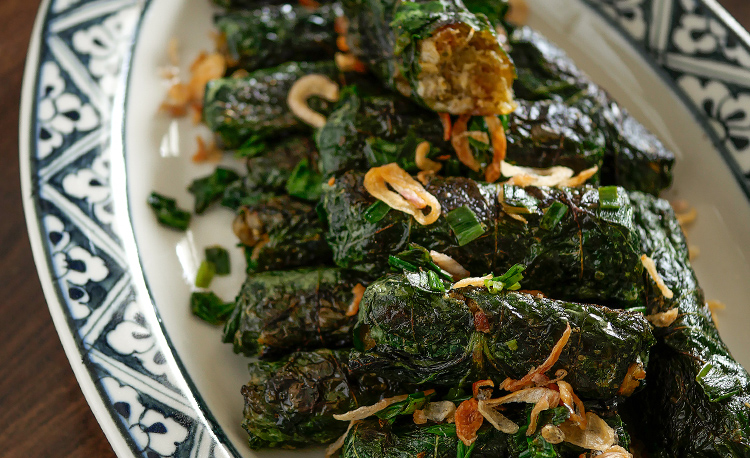 Món ăn này lấy ý tưởng từ món hến xào lá lốt và bò cuốn lá lốt. Nếu ai kiêng thịt đỏ thì có thể làm thử hương vị rất hấp dẫn, bổ dưỡng.